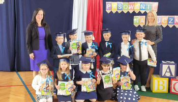 W tym wyjątkowym momencie towarzyszyli im starsi koledzy i koleżanki, dzieci z klasy zerowej oraz Rodzice. Uroczystość rozpoczęła się częścią artystyczną, podczas której pierwszoklasiści zaprezentowali przygotowany program – recytowali wiersze, śpiewali piosenki i tańczyli. Mimo tremy, dzieci wspaniale poradziły sobie ze swoimi występami, a zebrani goście nagrodzili je gromkimi brawami.
